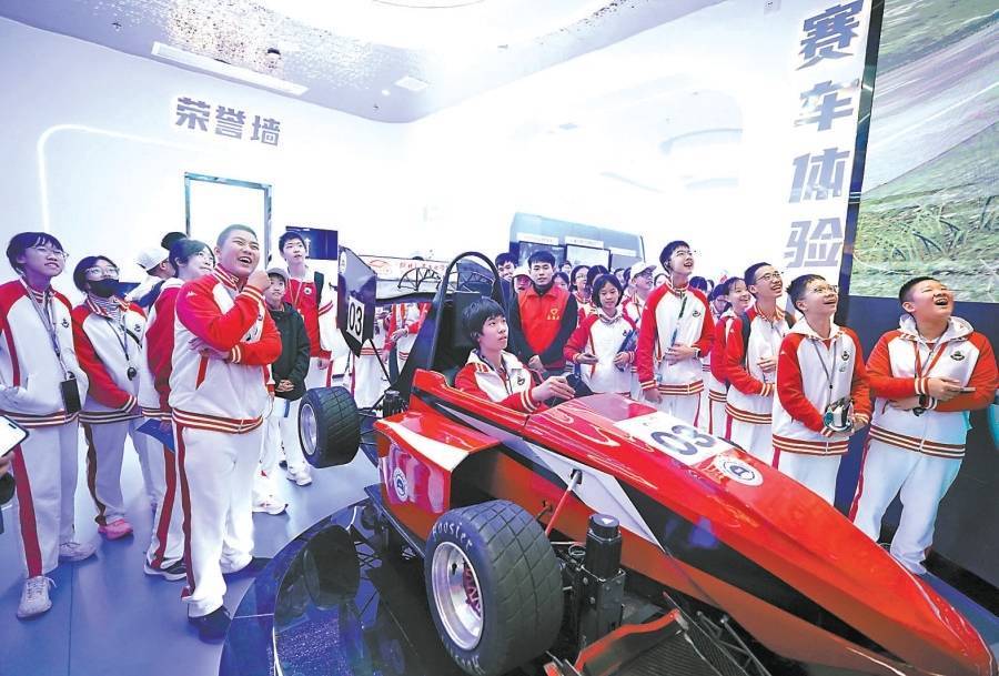这是一次科学探源之旅。在青龙山恐龙蛋化石群国家地质公园,学生们近距离观察恐龙蛋,探秘“白垩纪的兵马俑”,学习远古恐龙生存知识,沉浸式走进“恐龙世界”。在东风汽车博物馆,学生们参观了解三线建设中二汽工厂建设曲折艰辛的历程,学习“马灯精神”“芦席棚精神”,参观新一代新能源汽车展览,看科技赋能汽车产业,感受中国汽车工业飞速发展的进程。